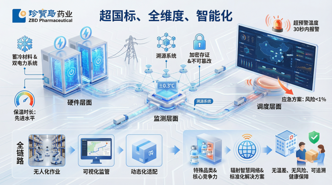 此次验证以“超国标、全维度、智能化”为核心,打造多重技术防护矩阵。在硬件层面,采用先进的蓄冷材料的冷链设备和双电力系统的电力保障,将保温时长延长至先进水平,断电状态下仍能维持精准温控。在监测层面,部署分布式传感网络与溯源系统,实现多仓储监测点高频数据采集,温度误差控制在±0.3℃以内,数据生成即加密存证,全程不可篡改。