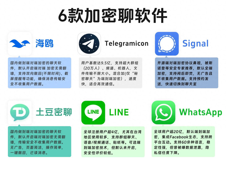 注重极致隐私,可优先考虑 Signal、海鸥app、土豆密聊;