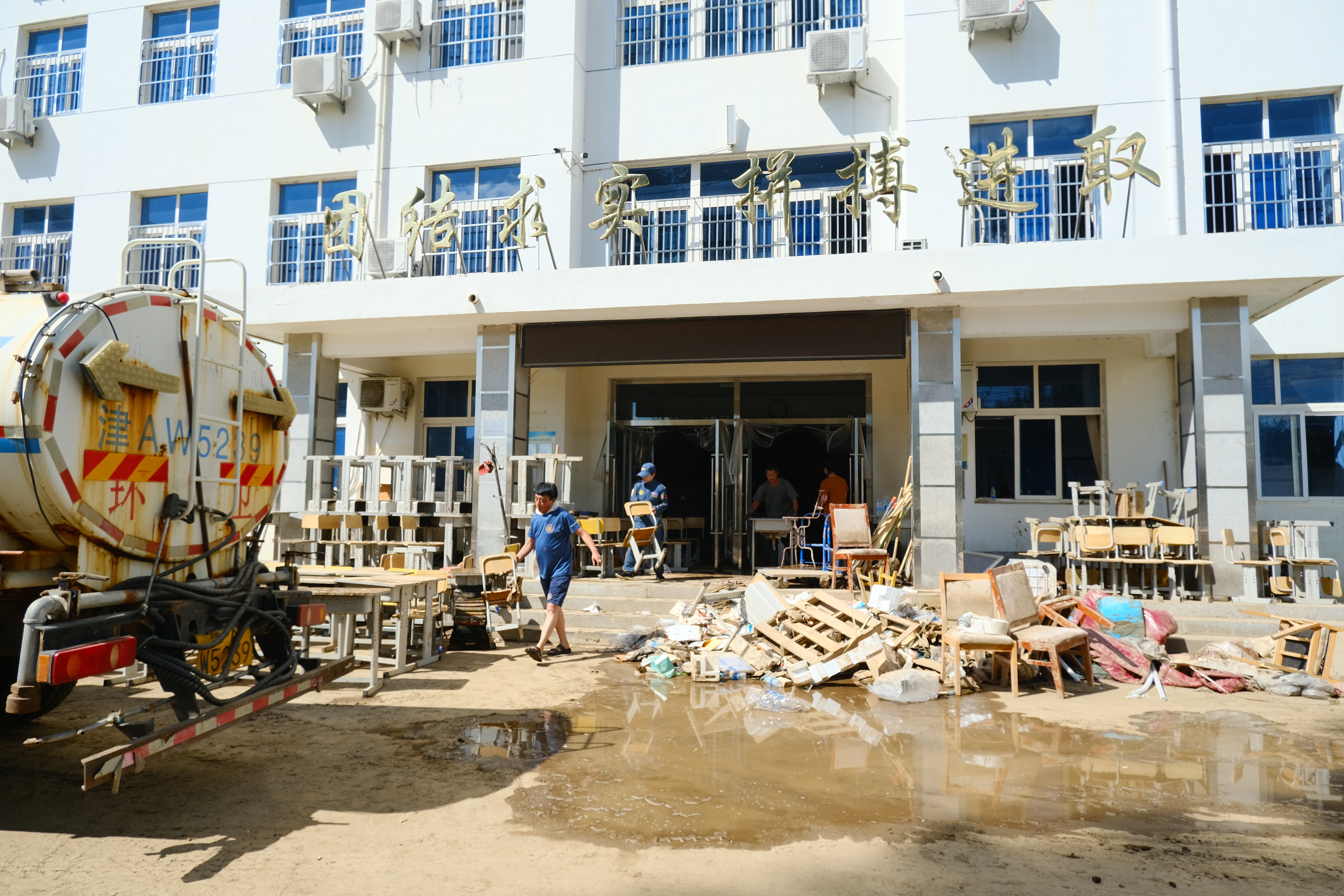 天津市蓟州区教育局局长徐连旺说:“下营中学是天津市唯一的一所山区高中,电力、供水、网络正在快速抢修中。”
